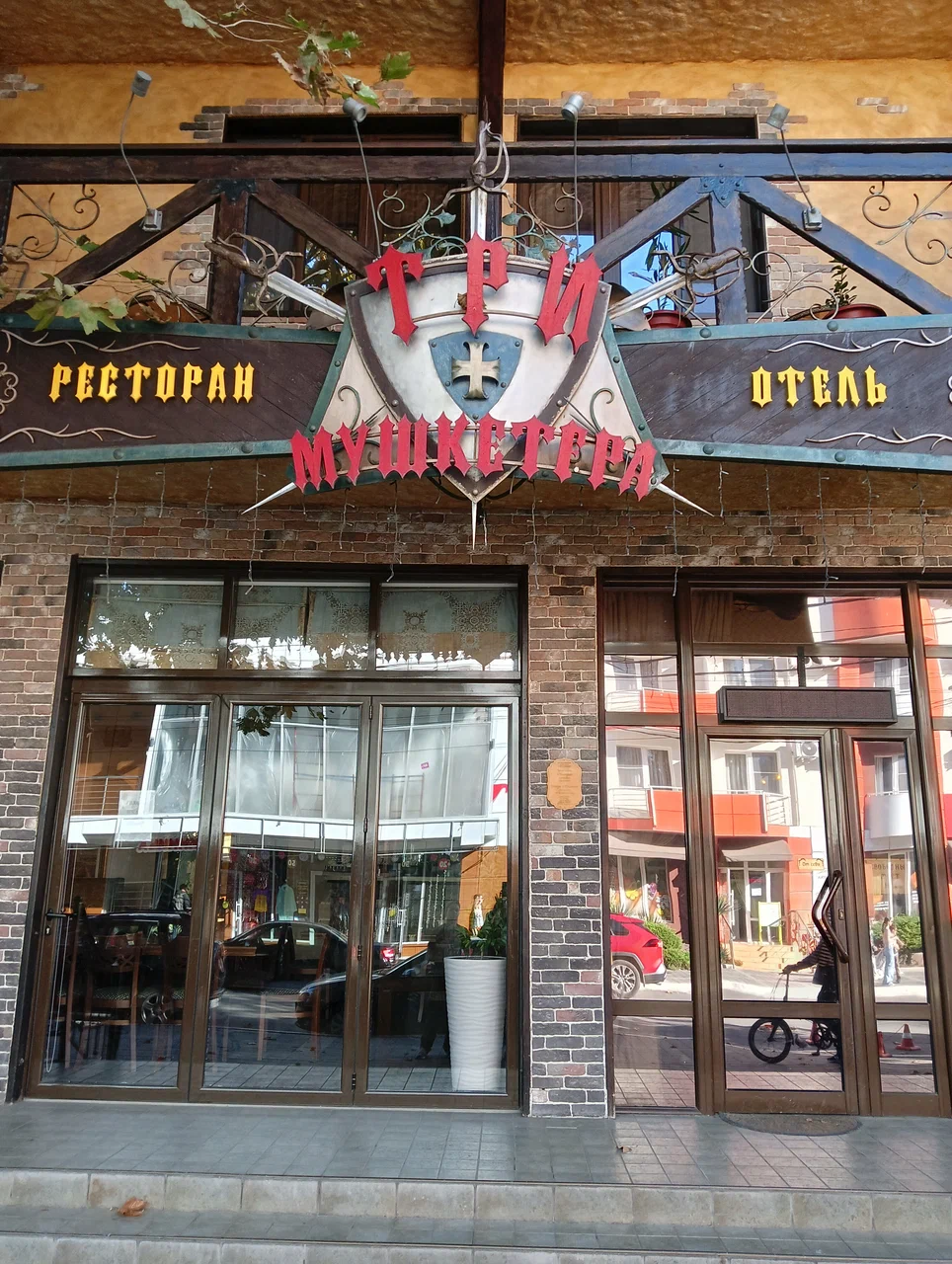 Люкс-отель «Три мушкетера» находится в самом сердце Анапы, на уютной пешеходной улице всего в 530 метрах от морского побережья. Вокруг сосредоточены ключевые городские объекты и основные сервисы, что делает расположение особенно удобным для отдыхающих. Всего несколько минут пешком — и вы у популярного аквапарка «Золотой пляж». Чуть дальше можно посетить парк аттракционов, динопарк или археологический музей. Поблизости также располагаются автостанция, крупные продуктовые магазины, центральный рынок. Дорога до аэропорта занимает около шестнадцати километров, а до железнодорожного вокзала — чуть более восьми.