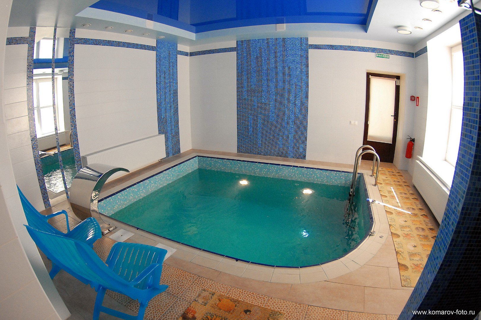• Крытый: с пресной водой, подогреваемый, с противотоком, работает круглогодично