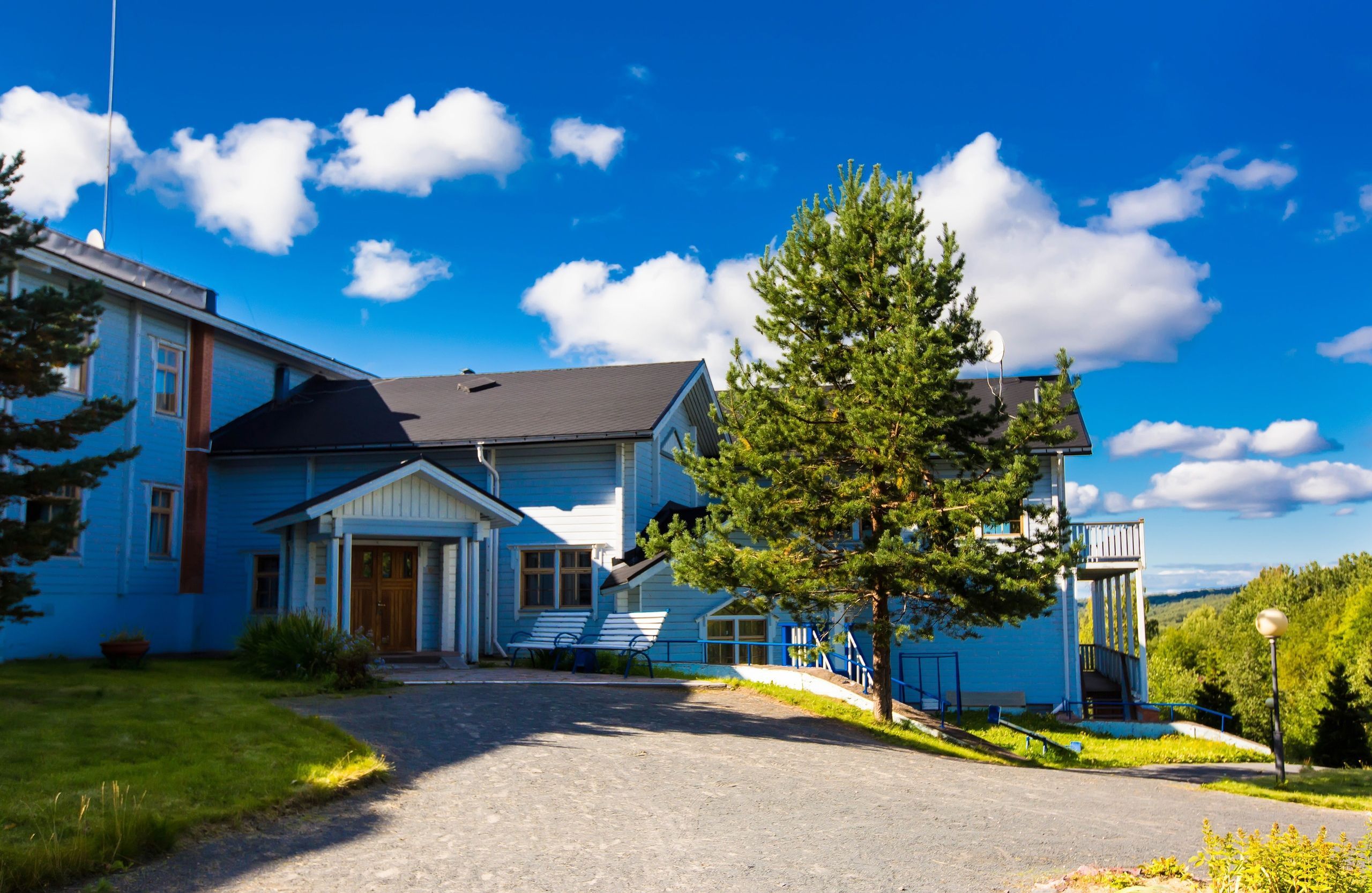 Отель построен по финской технологии с использованием экологически чистых деревянных конструкций. Он занимает площадь 1,5 Га и состоит из одного корпуса, трех домиков типа "A-frame" и бани. Вместимость отеля составляет до 120 человек. В отеле предлагается размещение в просторных и комфортабельных номерах двух категорий: Стандарт и Люкс. Все номера оборудованы системами отопления и водоснабжения, а также включают ванную комнату и качественную деревянную мебель, необходимую бытовую технику.